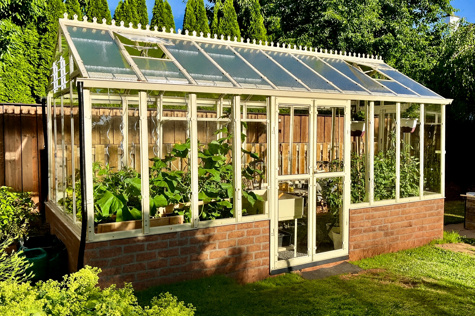 Anglický skleník Verso J vnáší do vaší zahrady kouzlo anglických venkovských sídel v kombinaci s poctivým českým řemeslem. Tento designový skleník zaujme stylovými detaily, nadčasovým vzhledem a přitom si zachovává praktickou funkčnost pro každodenní pěstování. Robustní žárově zinkovaná konstrukce, precizní zasklení a elegantní členění dělají z tohoto skleníku nejen prostor pro pěstování, ale i zahradní dominantu, která vás bude těšit desítky let.