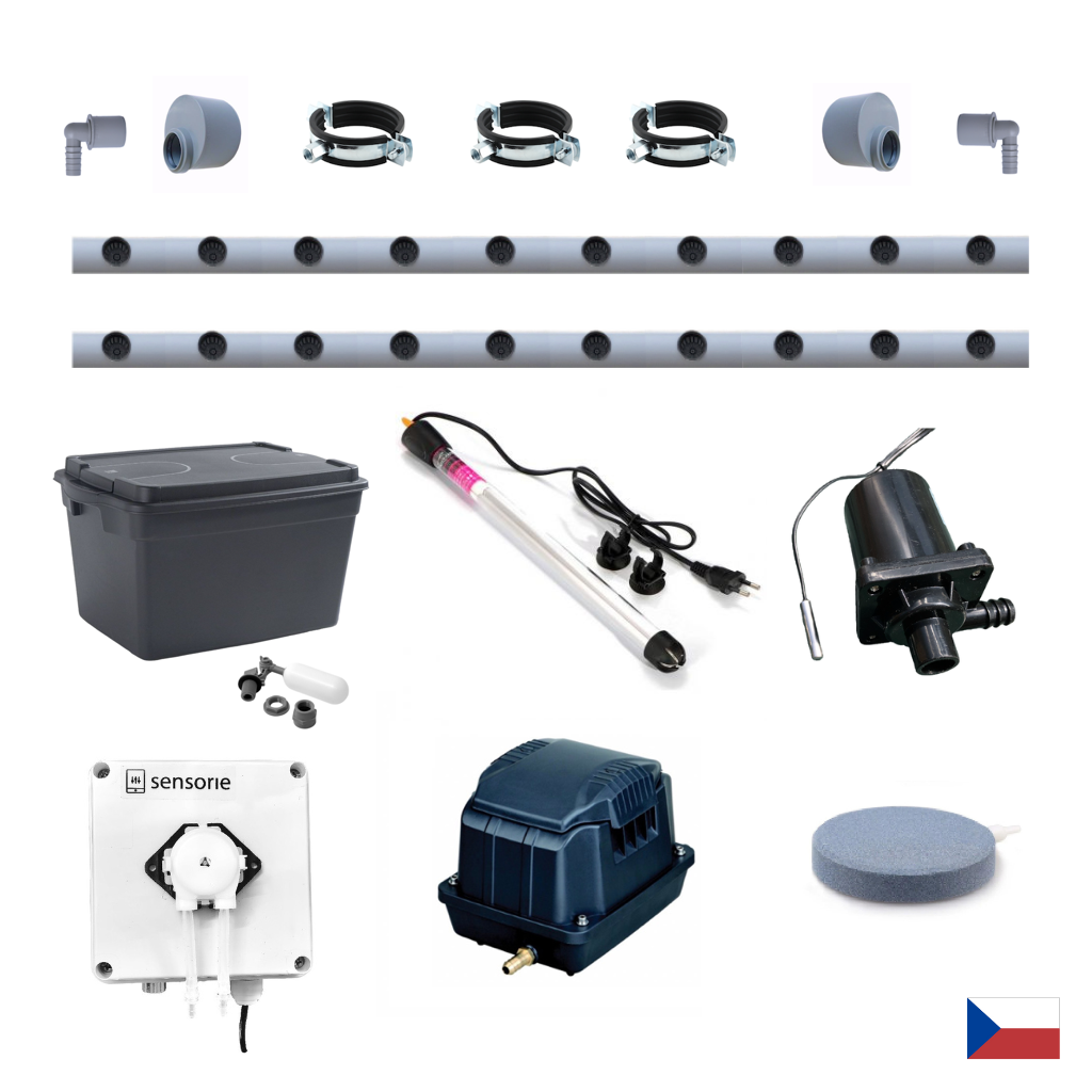 Správný vývoj rostlin vyžaduje i dostatek kyslíku. Proto je součástí balíčku vzduchovací sada – motor, hadička a kámen, který dodává kyslík do roztoku v podobě jemných bublinek. Díky tomu mají rostliny zdravé a silné kořeny.