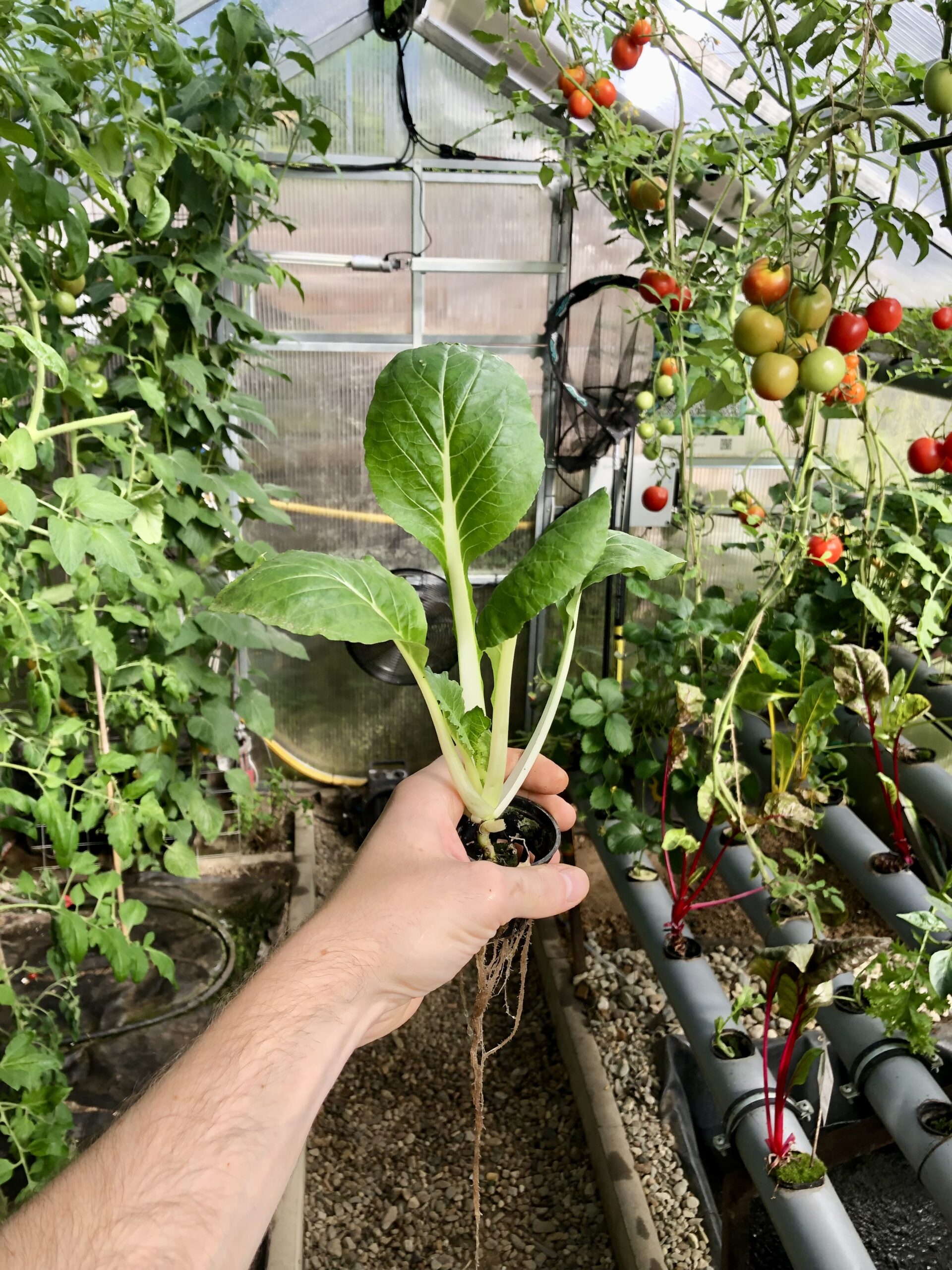 V balíčku najdete také dvojici hydroponických ramen v délce skleníku (kromě rezervy na koncích). Umisťují se po stranách skleníku nad půdním záhonem, takže se hydroponie výborně kombinuje s klasickým pěstováním v půdě. Pro rozšíření na celou kaskádu lze jednoduše přidat další ramena – elektronika zůstává stejná až do kapacity 360 pěstebních pozic.