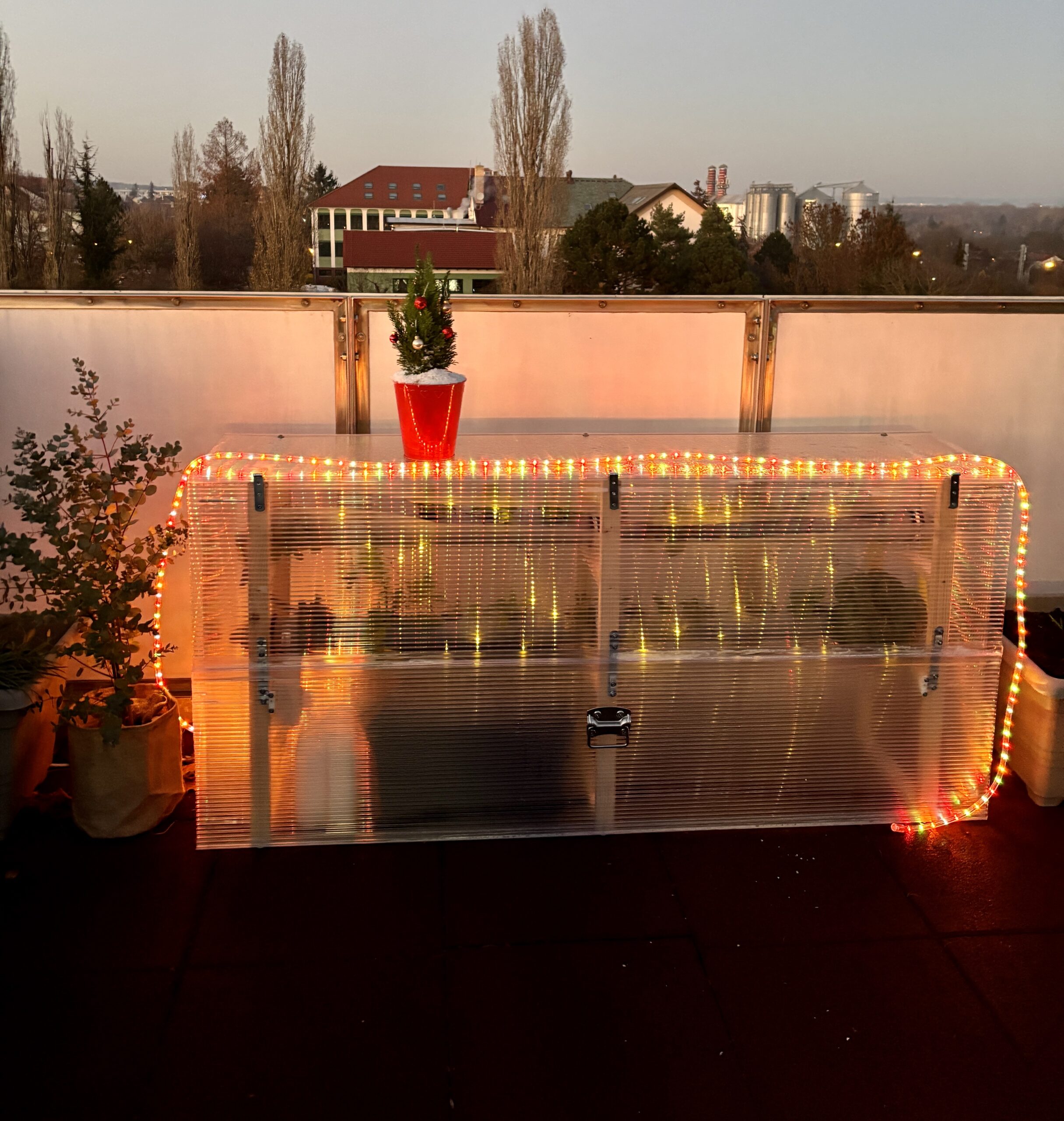 Výchozí výška konstrukce je 85 cm a šíře 40 cm, přičemž výchozí délku 165 cm lze do malých prostor nastavit zkrácením hydroponických ramen. Při výchozí délce je zde prostor pro 20 hydroponických rostlinek, kapacitu zahrádky lze přitom na dotaz i volitelně rozšířit, a to prakticky neomezeně. Možností je i zakoupit samostatnou výbavu bez zateplené konstrukce. Hydroponická ramena lze v tomto případě pomocí univerzálních úchytů z dodávky připevnit i ke stěně nebo zábradlí balkonu. Bez zateplené konstrukce sice nelze pěstovat celoročně, zato se ale vejde i na ten nejmenší balkon.